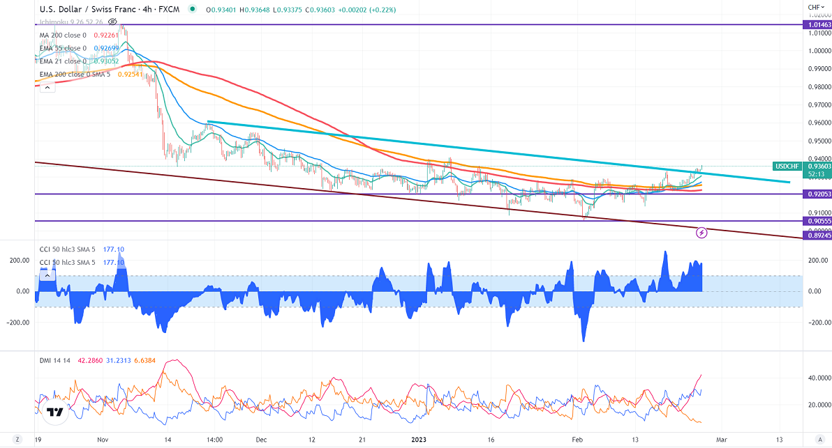 The near-term resistance is around 0.9360 and any breach above targets is 0.9400/0.9435/0.9500. Significant bullish continuation only if it breaks 0.9600.