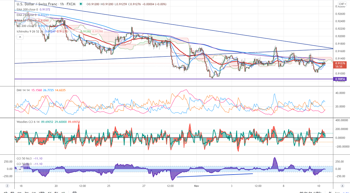 The pair is trading in a narrow range between 0.90848 and 0.91757 for the past week. It rose 0.6% in October in line with a forecast of 0.6%. The yearly PPI increased 8.6%, the highest annual pace in 11 years. Markets eye US CPI and Unemployment claims for further direction.USDCHF hits an intraday high of 0.91389 and is currently trading around 0.91367.