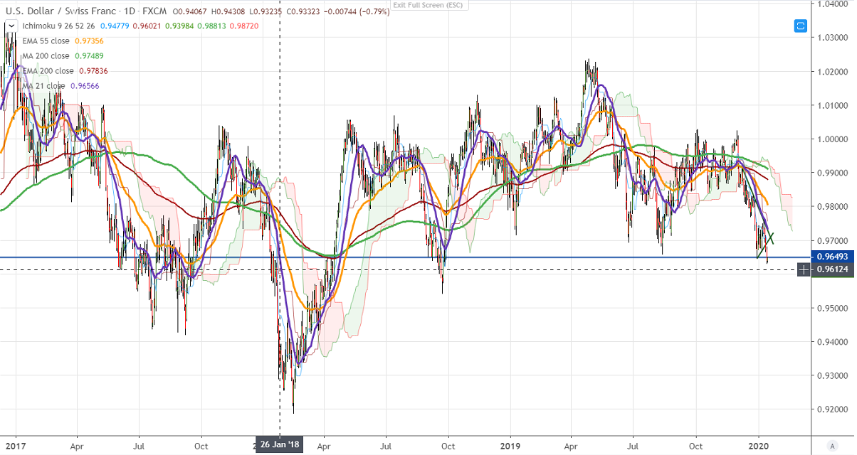 It is good to sell on rallies around 0.9660-65 with SL around 0.9700 for the TP of 0.9545.