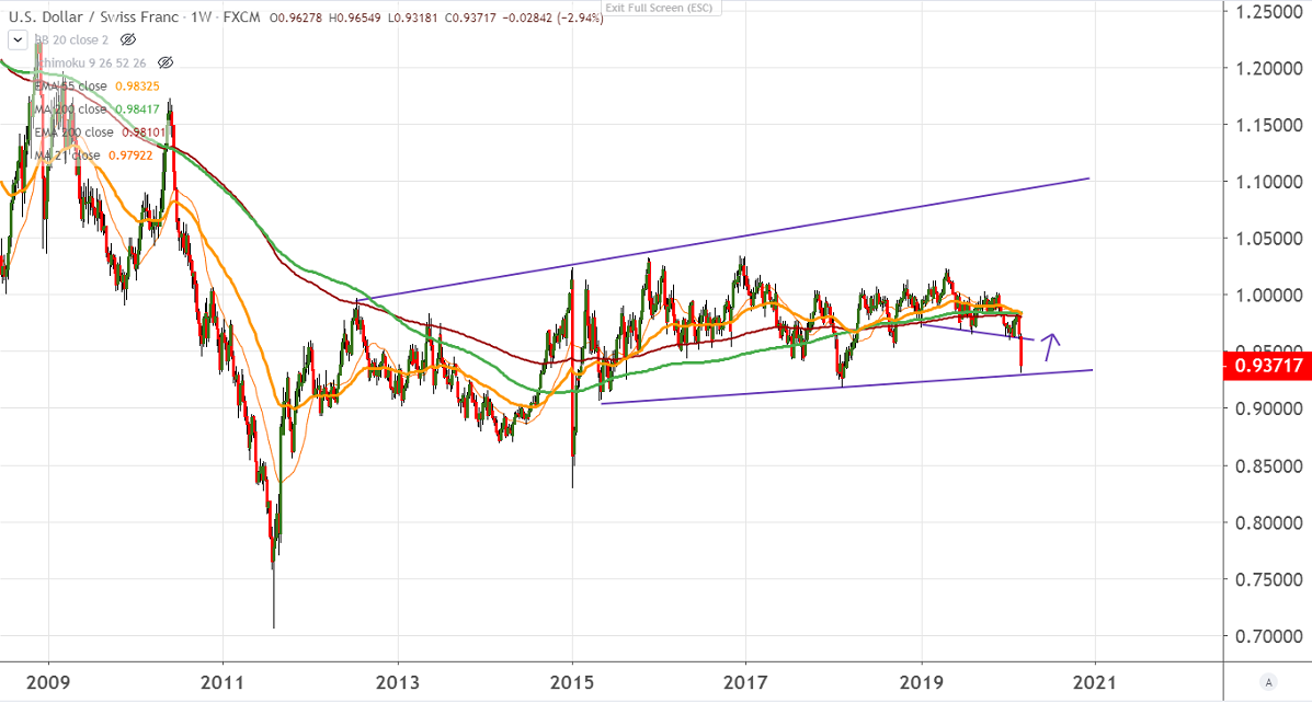 USDCHF is trading extremely weak for the past 3 weeks and lost more than 500 pips. The decline was mainly due to an increase in demand for Safe-haven assets like yen, gold and Swiss franc. It hits an intraday low of 0.93181 and is currently trading around 0.93696.