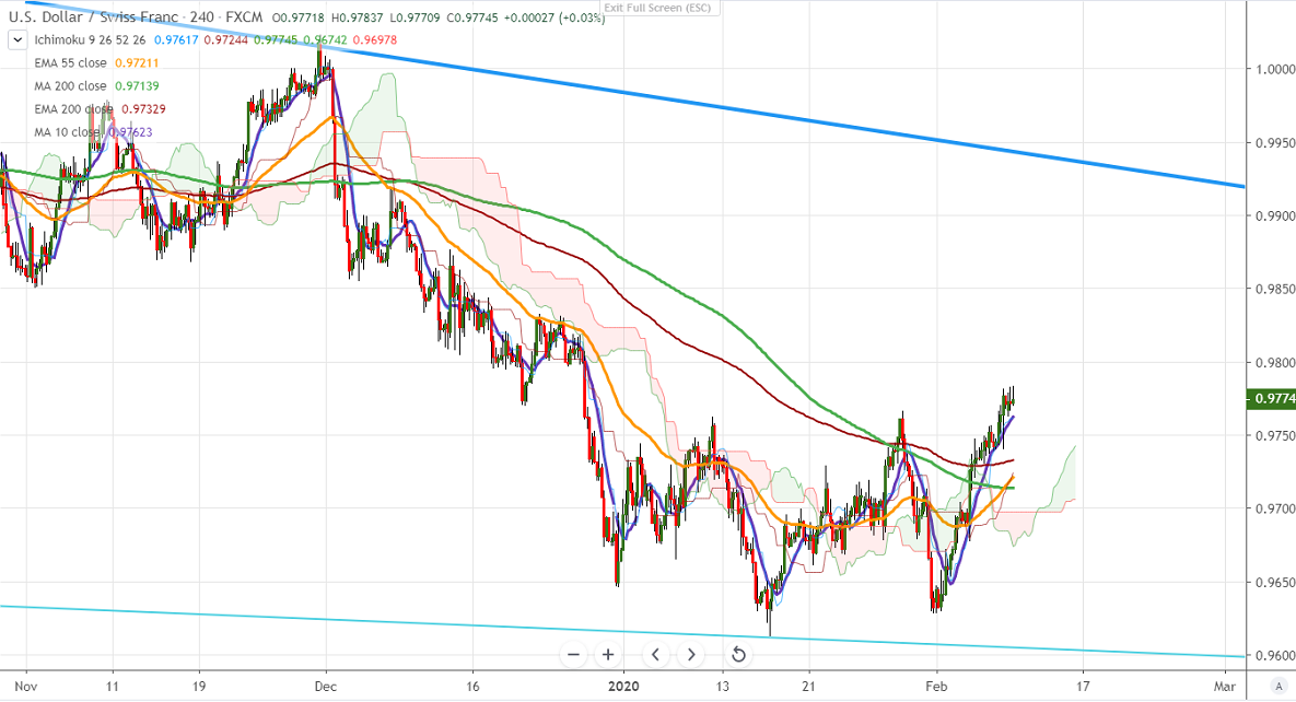 USDCHF is trading higher for 6-week and jumped more than 150 pips. The surge in bond yield and upbeat US jobs data is supporting the dollar index at lower levels. Markets eye US Non-Farm Payroll data for further direction. It hits an intraday high of 0.97837 and is currently trading around 0.97725.