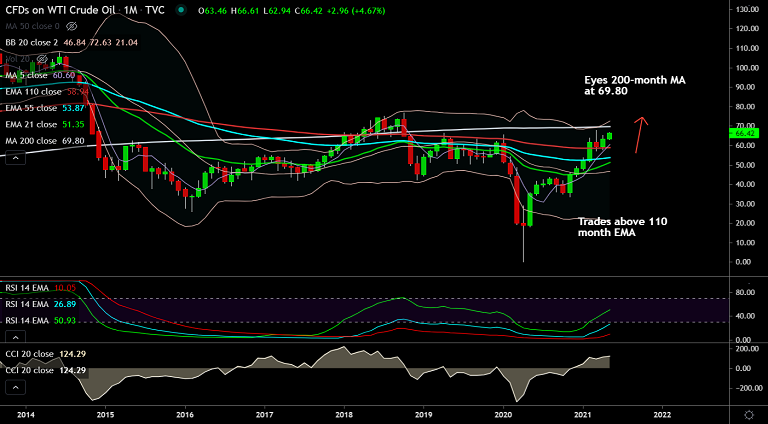 West Texas Intermediate (WTI) extends previous session's gains, hits 8-week highs above $66 mark.