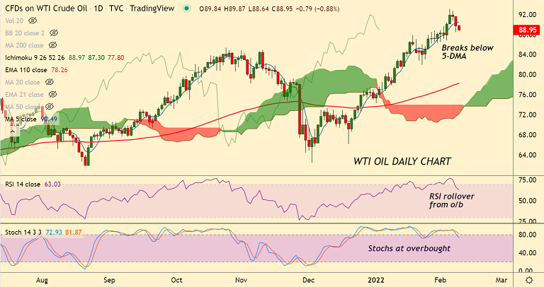 Technical indicators suggest some weakness in the pair. Scope for test of 21-EMA support at 86.53.