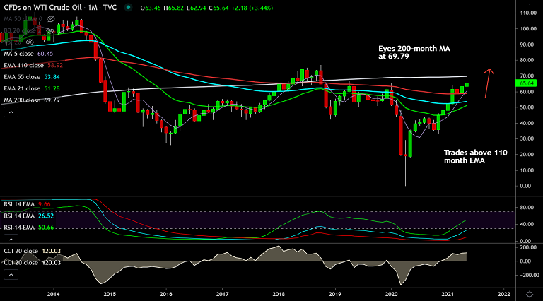 West Texas Intermediate (WTI) continues to grind higher, hits fresh 7-week highs above $65 mark.