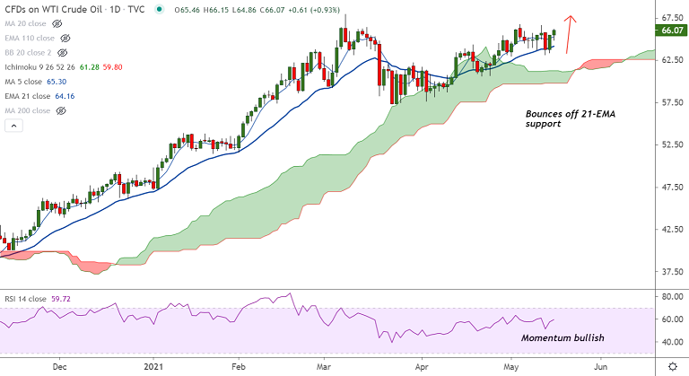 The Colonial Pipeline recovered from last week's cyberattack and eased concerns over supply shortages, will likely limit WTI's upside.