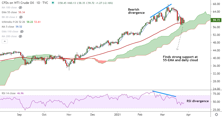 Daily Ichimoku cloud and 55-EMA seem to be offering strong support for the time being, further weakness only on breach below.
