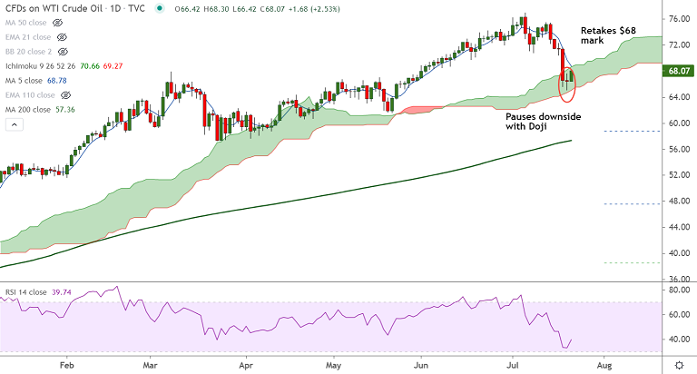 West Texas Intermediate (WTI) crude oil was trading 2.43% higher on the day at $68.02 at around 11:35 GMT.