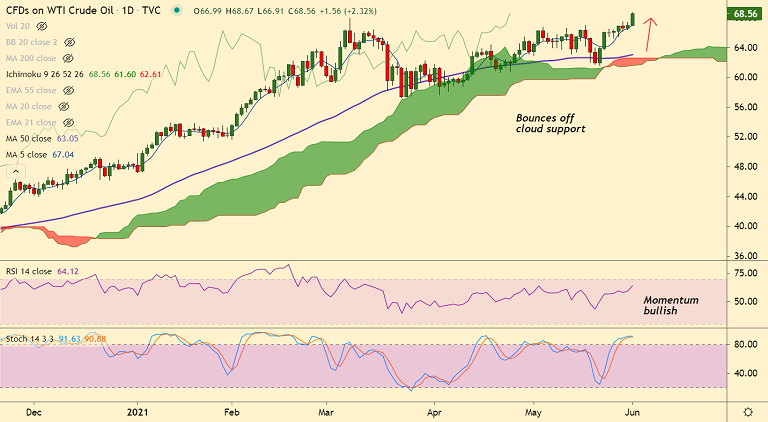 WTI crude oil prices spiked over 2.30% and were trading at $68.59 at the time of writing.