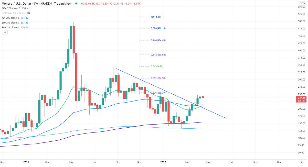Top Altcoins Strength Index (Weekly chart calculated using EMA and Average directional index )