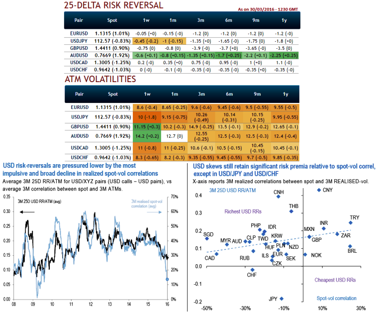 The breadth of the move, we find value in fading risk premia in USD risk-reversals to benefit from an extension of the move in the short term.