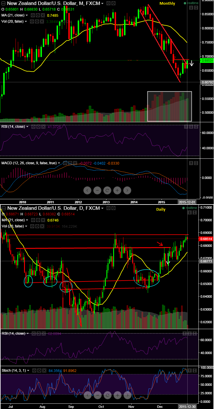 On EOD charts, this has struggled and failed to hold onto 0.6883 levels that have acted as crucial resistance in the recent past as well (see circled areas).