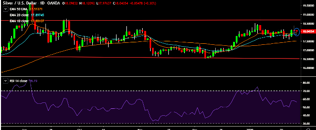- XAG/USD is currently trading around $18.08 marks.