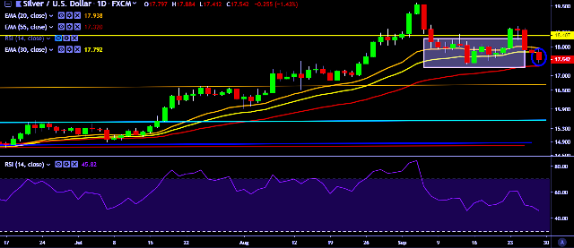 - XAG/USD is currently trading around $17.53 marks.