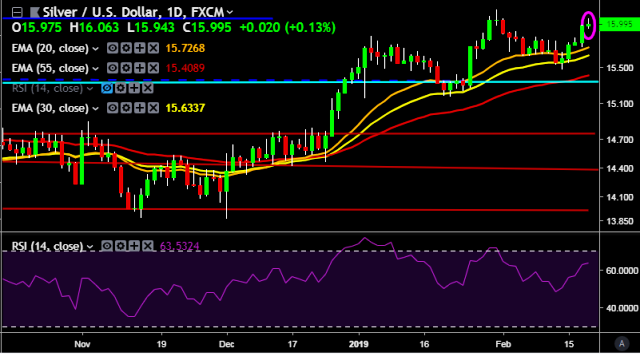 - XAG/USD is currently trading around $15.99 marks.