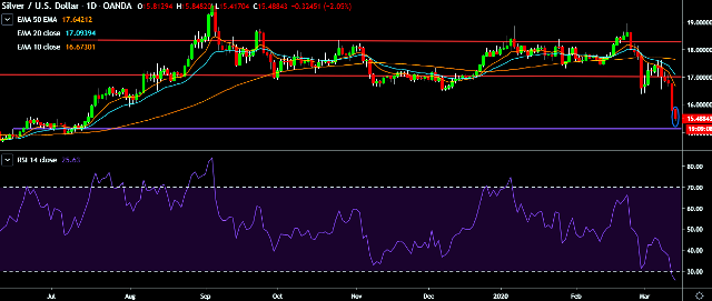 We prefer to take short position on XAG/USD around $15.50, stop loss at $15.85 and target of $15.00/$14.92.