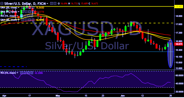 We prefer to go short on XAG/USD around $16.68 with stop loss at $16.95 and target of $16.34.