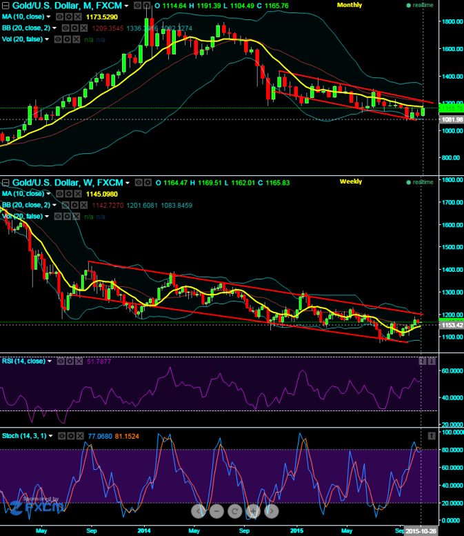 Otherewise, we don't think prevailing price bounces to sustain in long run, see gold and silver struggled and rejected to break out strong resistance at 1191 region and 16.30 levels respectively on monthly charts.