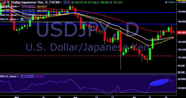 - USD/JPY is currently trading around 105.80 marks.