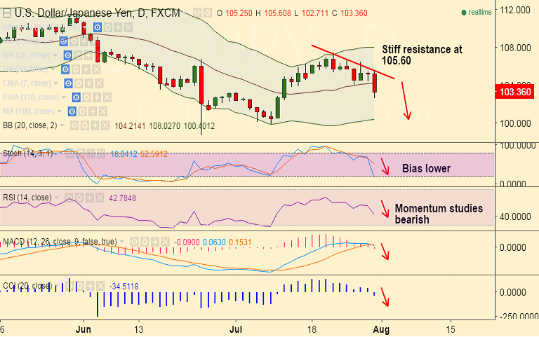 - Our previous call (http://www.econotimes.com/FxWirePro-USD-JPY-slips-below-105-handle-bias-lower-good-to-sell-on-rallies-241490) has achieved all targets.