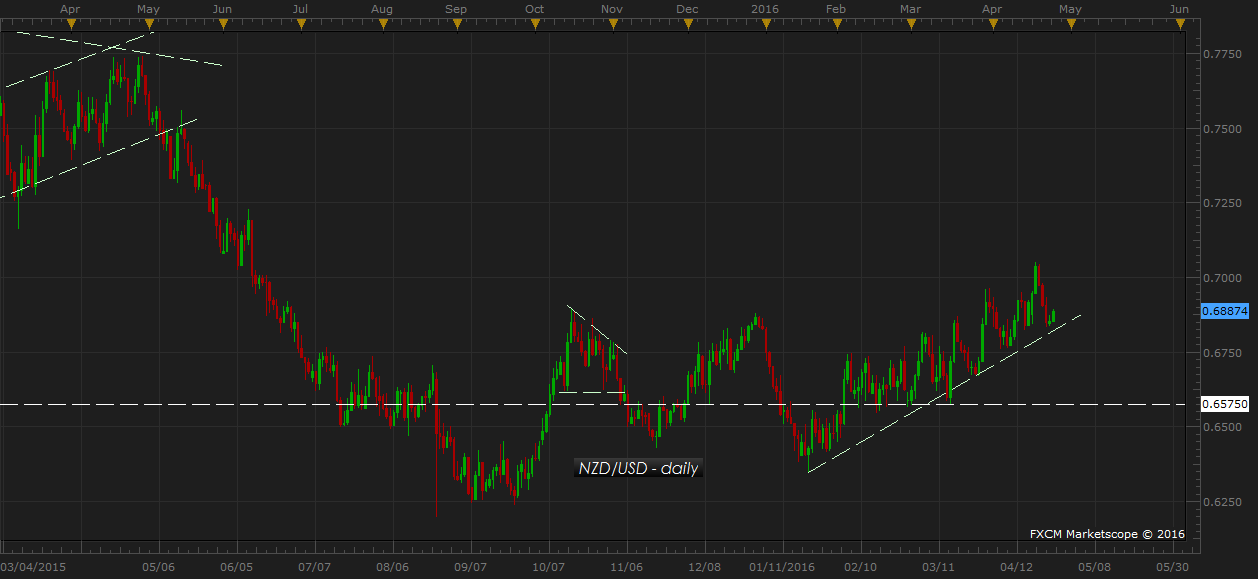 Kiwi has found support in the rising trend line, around 0.685 area and if both the central bank hold policy tomorrow, then Kiwi may once again rise from the trend line and break above 0.7 area.