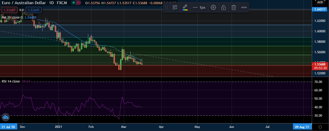 • EUR/AUD declined on Tuesday as possible delays in EU vaccine roll-out in EU weighed on Euro