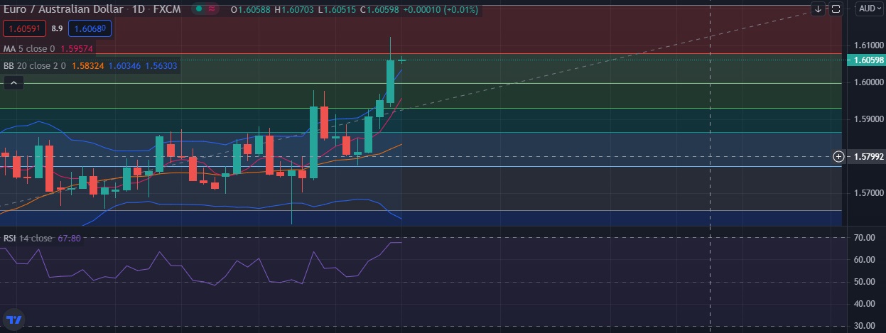 • EUR/AUD rose on Monday as growing global concerns about the delta variant and more aggressive lockdowns across Australia weighed on Australian dollar.