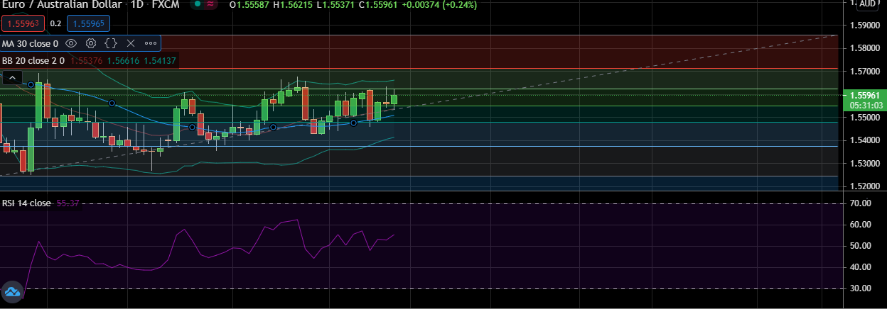 • EUR/AUD uptrend is poised to accelerate ,likely target for the current trend is 1.5660 (higher BB).
