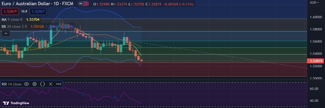 • EUR/AUD is probing support zone 1.5252 (23.6%fib ) , Break lower risks run towards 1.5200 level in the short term.