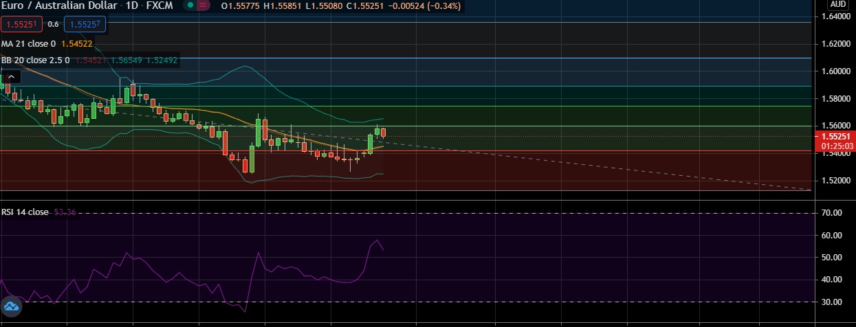 • Support is seen at 1.5454 (21DMA ) and break below could take the pair towards 1.5419 (23.6%fib).