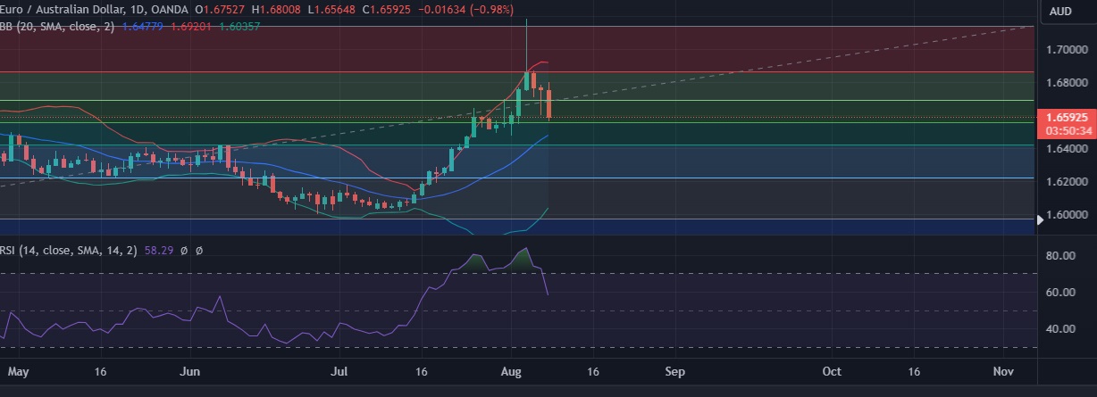 •EUR/AUD chart has taken a turn for the worse after today 's large drop.Overall risk growing for a bigger drop to towards 1.6450 level