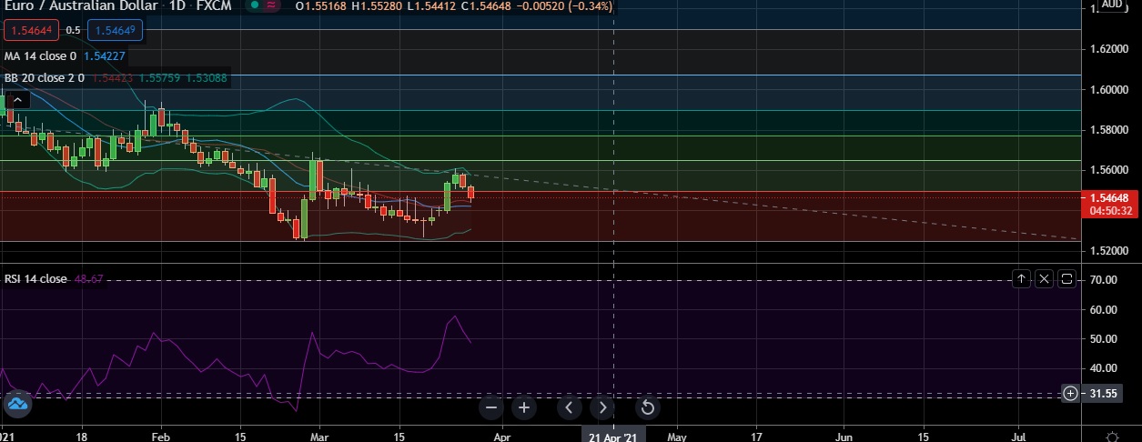• EUR/AUD dipped on Friday as worries about the European Union's slow vaccination rollout weighed on euro.