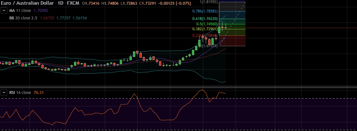 • The pair failed to breach a key 50% Fibo retracement at 1.7448 as the pair was severely overbought.