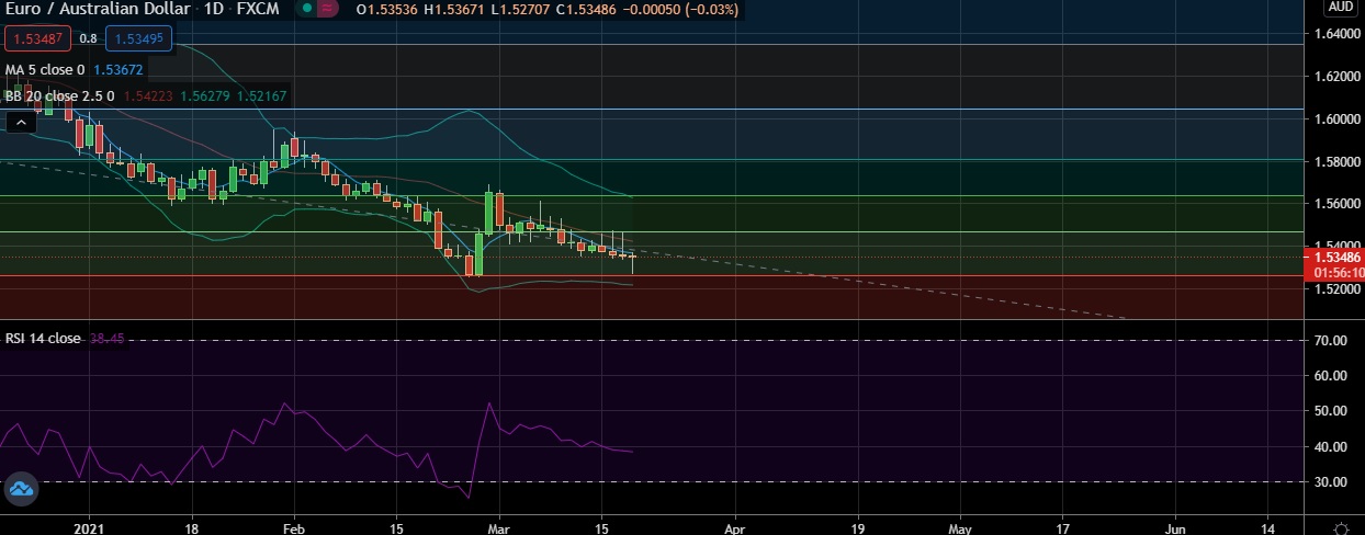 • EUR/AUD initially declined to hit daily low at 1.5266 on Thursday but reversed some downside moves as investors reacted to the Federal Reserve’s policy statement a day earlier.
