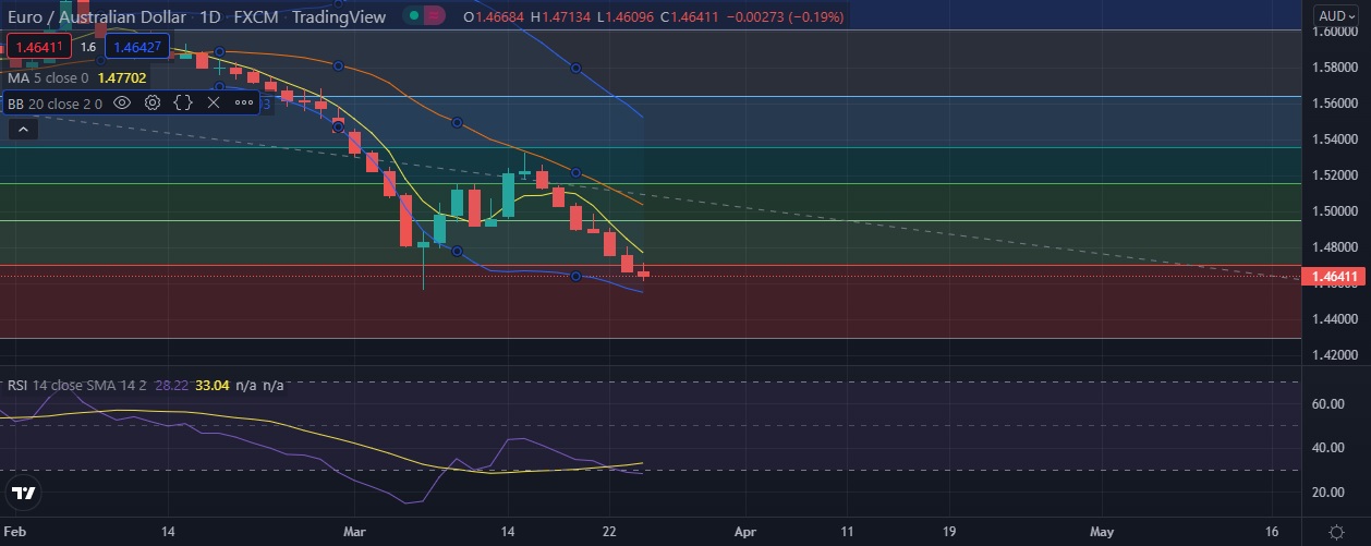 • EUR/AUD declined on Thursday as concerns over soaring commodity prices and uncertainty surrounding the war in Ukraine weighed on the pair.
