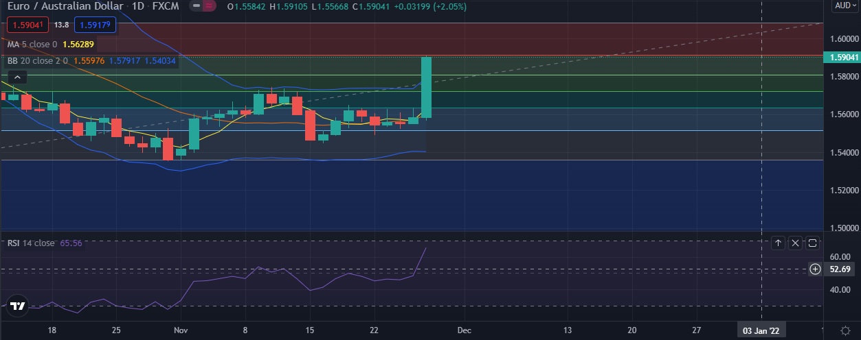 • EUR/AUD rose on Friday as new COVID-19 variant sparked risk-aversion.