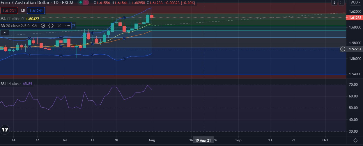 • EUR/AUD declined on Monday as Australian dollar strengthened ahead of RBA policy meeting.