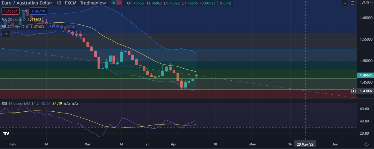 • EUR/AUD gapped up on Monday on news Macron led first round French election.