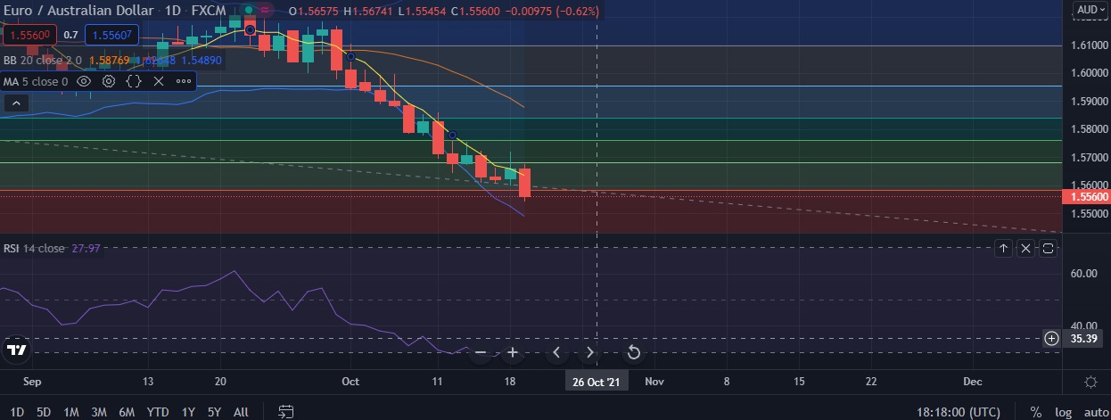 • EUR/AUD declined on Tuesday as Australian dollar rose across the board on growing bets that RBA will hike rates.