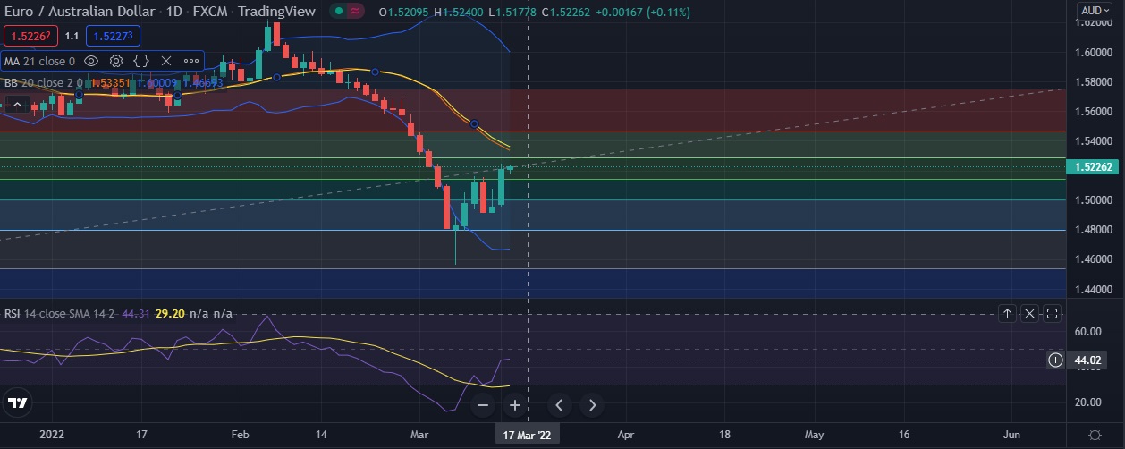 • EUR/AUD rally extended towards 1.5230 on Monday as market unwound EUR shorts against the AUD on Ukraine peace hopes.