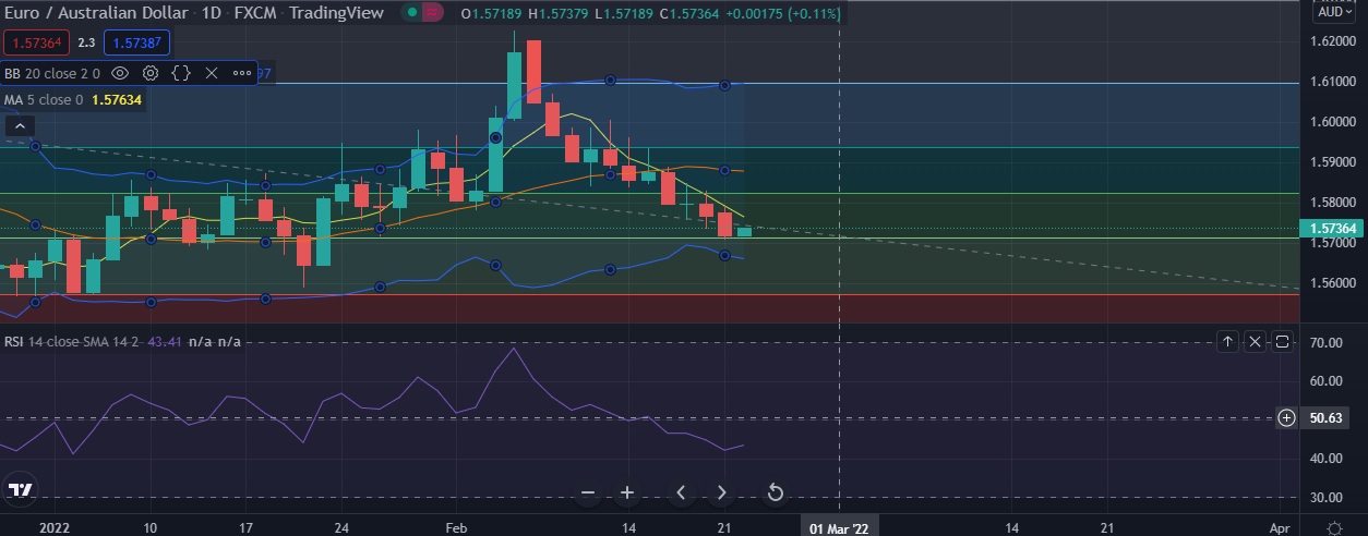•Support is seen at 1.5712(38.2%fib ) and break below could take the pair towards 1.5661(Lower BB).