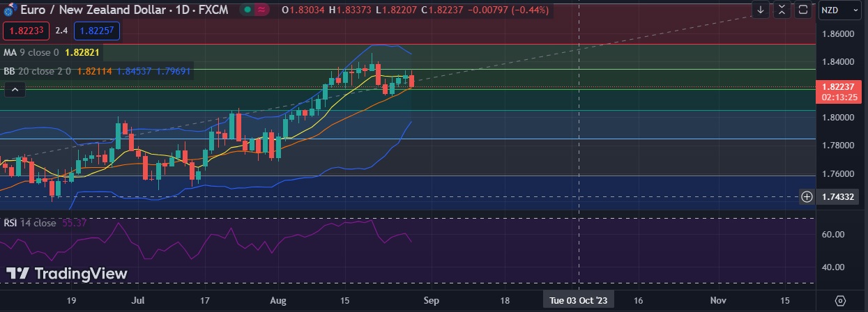 • EUR/NZD traded in range 1.8339-1.8229 the pair was last trading down 0.43 percent at 1.8223