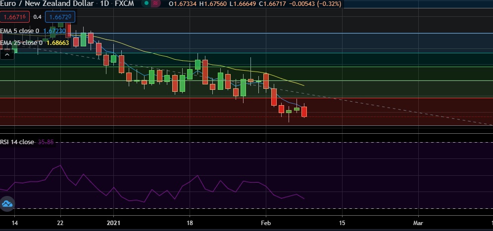 • EUR/NZD declined on Monday as disappointing reports about the efficacy of COVID-19 vaccines against new strains of the virus weighed on the pair.