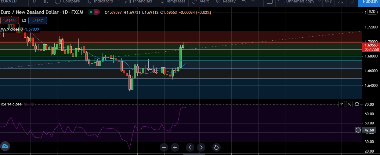 • EUR/NZD strengthened on Thursday as traders remained long as investors were optimistic about economic rebound despite coronavirus restrictions in the euro zone.