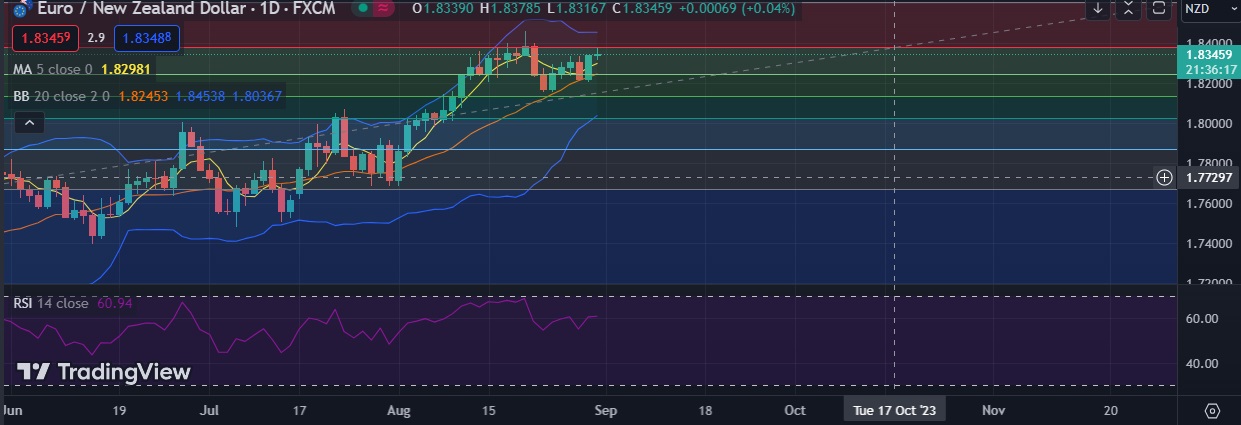 • EUR/NZD traded in range 1.8373-1.8215 the pair was last trading up 0.03 percent at 1.8344.