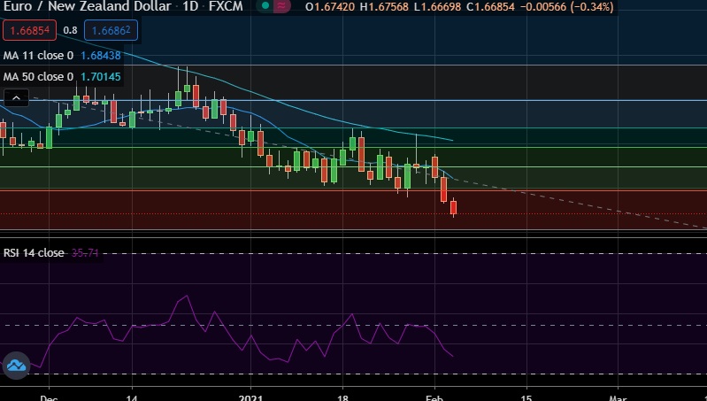 • EUR/NZD declined on Wednesday as widening disparity between the strength of U.S. and European pandemic recoveries weighed on euro.