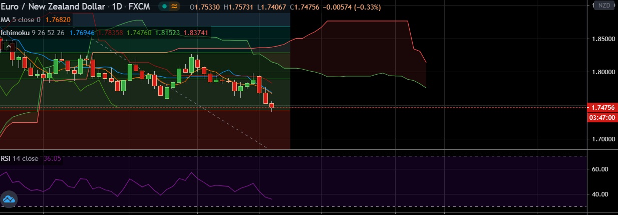 • The pair reached 1.7410 after extending south from 1.7566. 1.7410 is the lowest level since 24th February 2020.