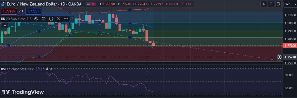 • Immediate support is seen at 1.7710 (23.6% fib) and break below could take the pair towards 1.7680(Lower BB).