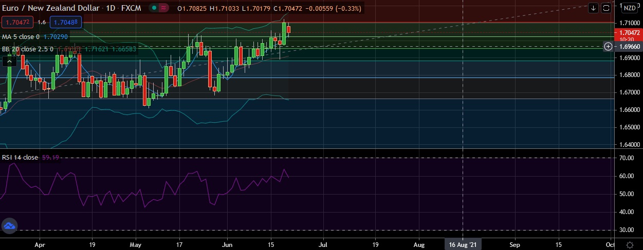 • EUR/NZD recovered from daily low, keeping bullish sentiment intact as the pair found support at 1.7021 (38.2% fib).