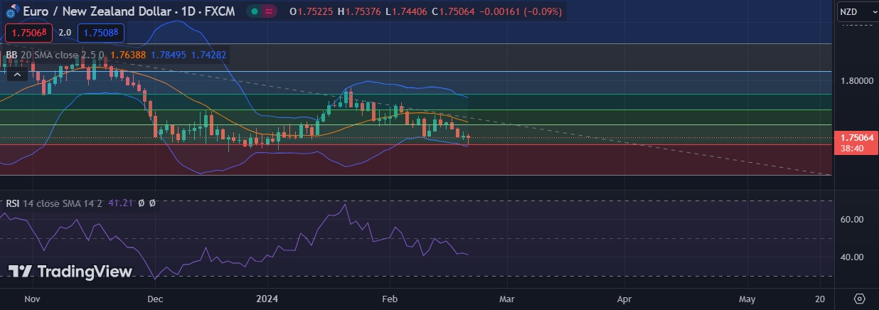 • EUR/NZD has seen a 1.7450-1.7537 range on Wednesday, chart points to an drop towards 1.7450.