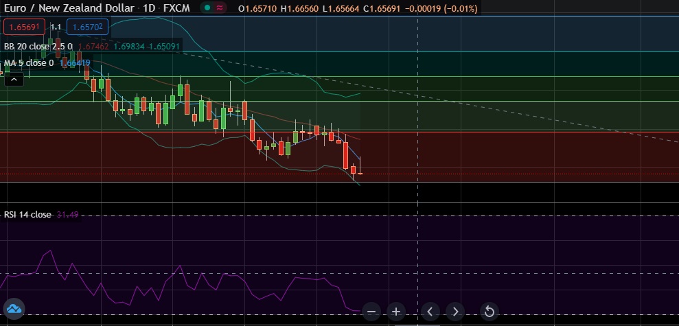 • The EUR/NZD has corrected lower from 1.6828 reached on Feb 12th 2021.The inability to maintain upward momentum suggests the EUR/NZD has more downside.